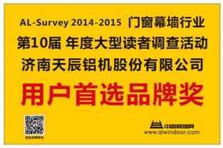 AL-Survey讀者調(diào)查活動全稱:中國幕墻網(wǎng)年度大型讀者調(diào)查活動暨“我最喜愛品牌”評選活動。(以下簡稱AL-Survey)我司作為設(shè)備領(lǐng)域的領(lǐng)先企業(yè),自上界獲得用戶首選品牌及市場表現(xiàn)獎之后,2015年再次憑借“天辰鋁機”品牌在市場中的優(yōu)異成績,強勢入圍2015-2016年度第11屆門窗幕墻品牌榜活動。通過近十萬名活動參與者的票選,AL-Survey將成為我司年度市場品牌推廣與產(chǎn)品銷售、服務(wù)質(zhì)量的晴雨表。