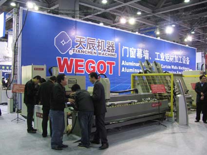 ??? 3月10日,為期三天的“2010年(第十六屆)全國(guó)鋁門窗幕墻行業(yè)年會(huì)暨鋁門窗幕墻新產(chǎn)品博覽會(huì)”在廣州拉開(kāi)帷幕。國(guó)內(nèi)眾多知名品牌,以及來(lái)自德國(guó)、意大利、法國(guó)、韓國(guó)及中東等國(guó)家的近800個(gè)參展商共赴這一行業(yè)盛會(huì)。天辰鋁機(jī)攜數(shù)臺(tái)新產(chǎn)品盛裝登場(chǎng)。