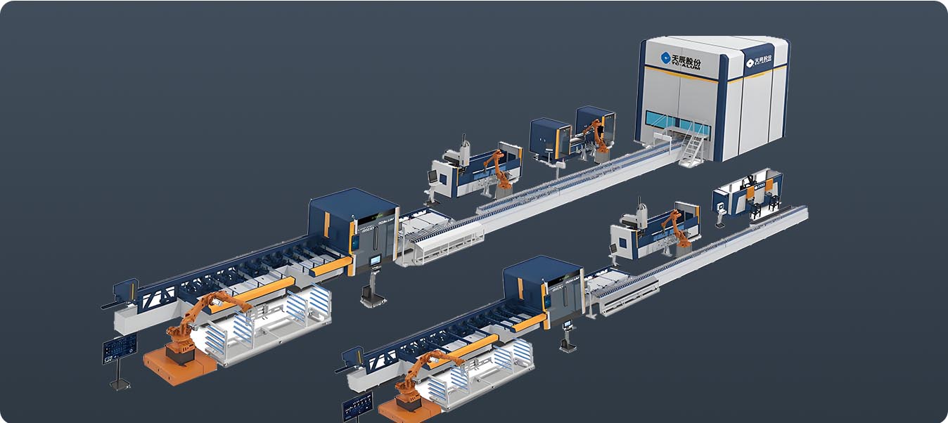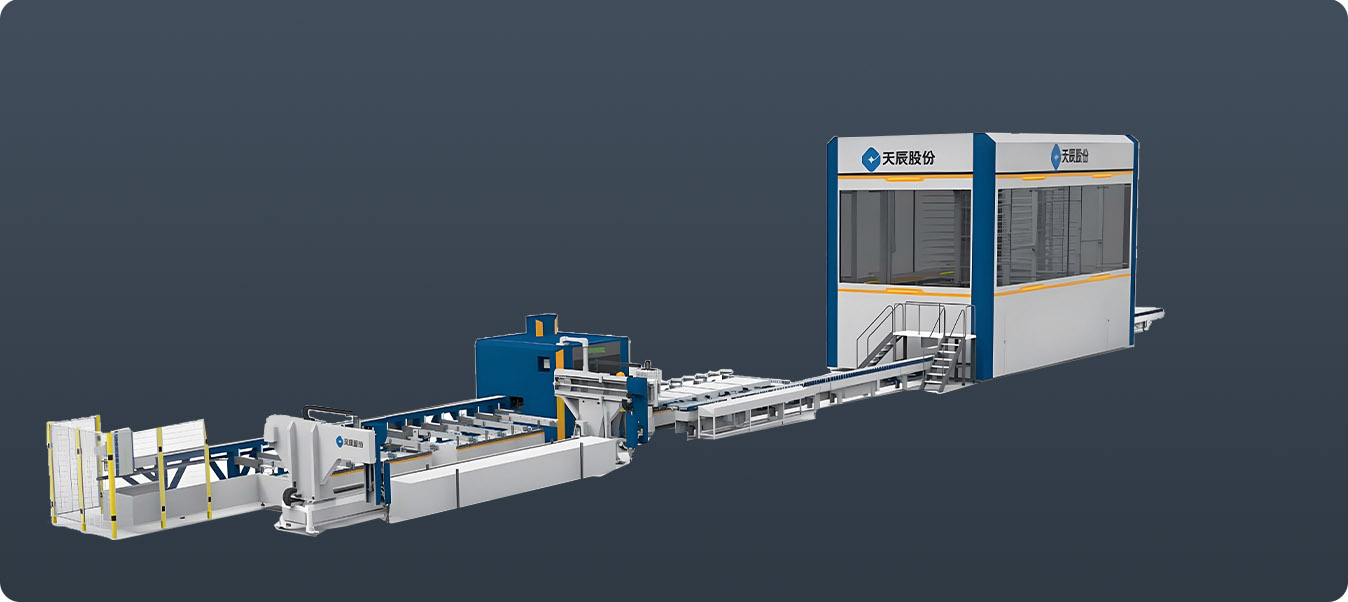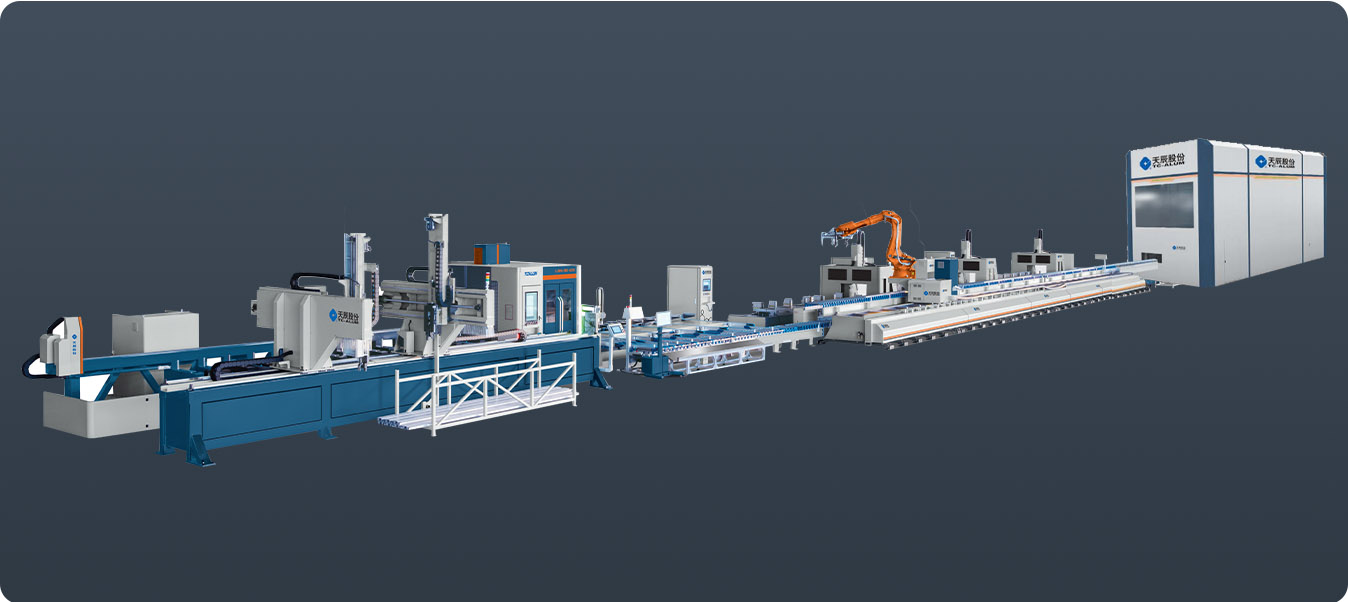 行業(yè)領(lǐng)先的幕墻智能生產(chǎn)線,可完成幕墻公母立柱、橫梁、裝飾線條等多種型材的智能鋸銑加工。在天辰 MES 中控系統(tǒng)的精準(zhǔn)管控下,實(shí)現(xiàn)自動上料、智能鋸銑、自動分揀、機(jī)器人柔性搬運(yùn)、加工中心智能鉆銑、全自動下料碼垛。