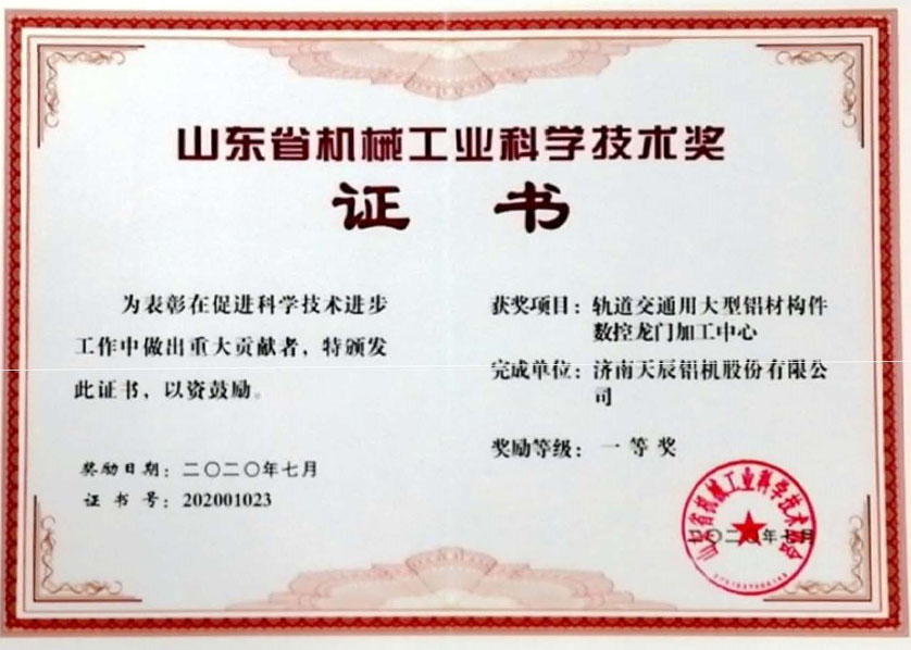 2020年山東省機(jī)械工業(yè)科學(xué)技術(shù)獎(jiǎng)一等獎(jiǎng)